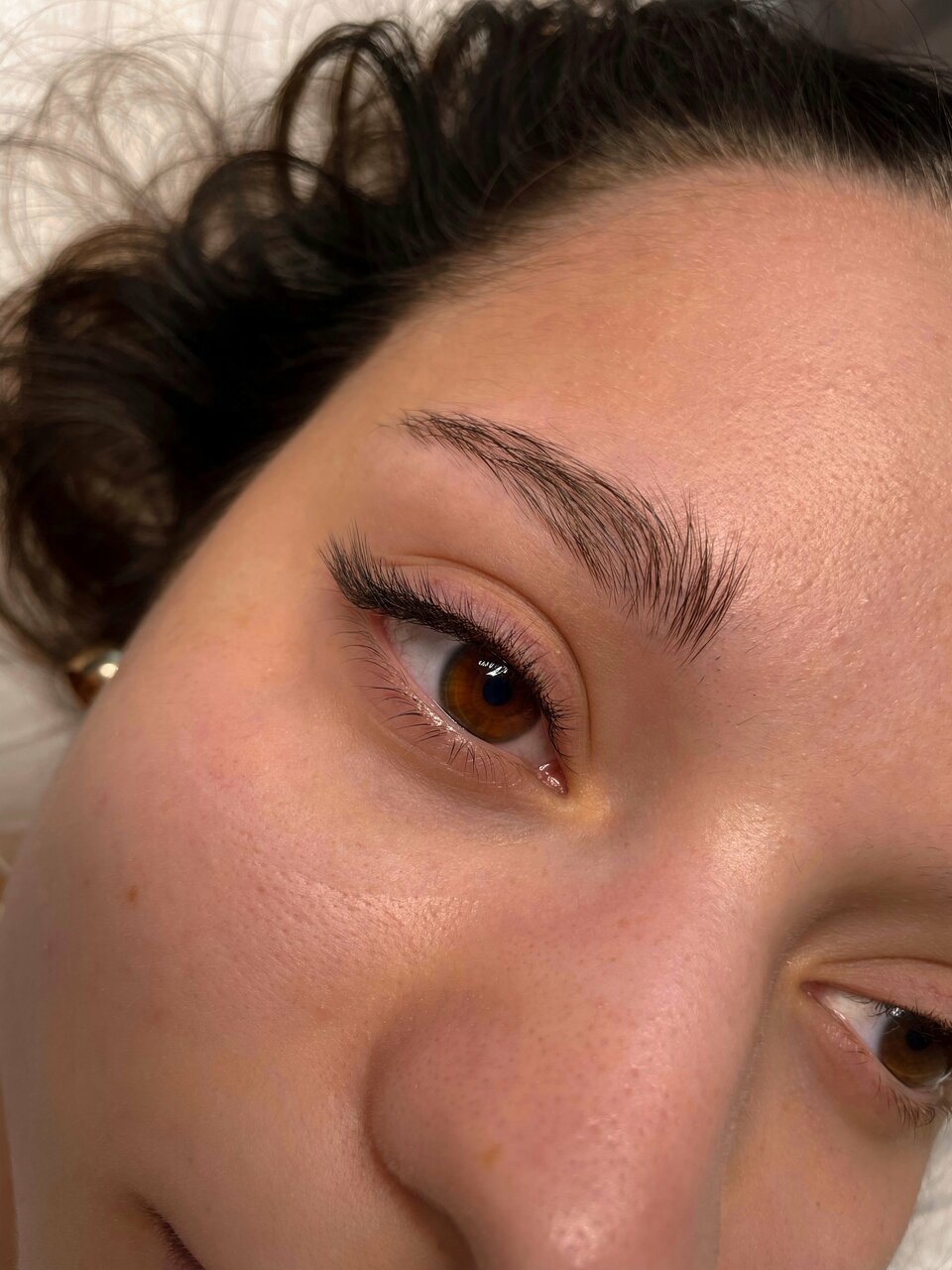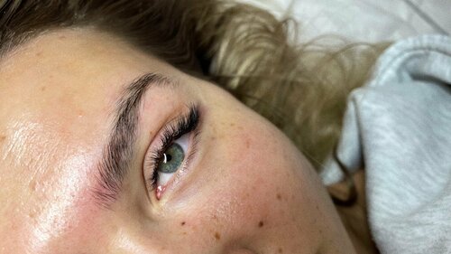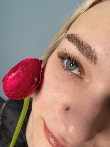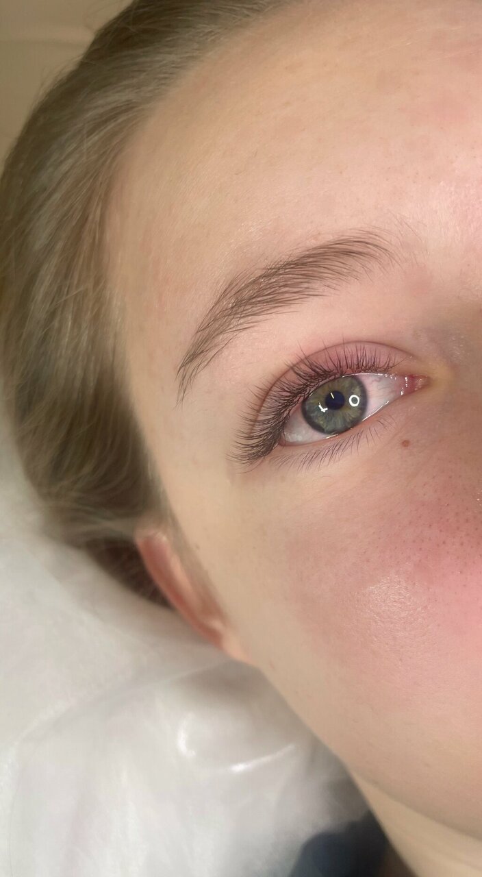 Мы предоставляем услуги наращивания и ламинирования ресниц , а так же оформления бровей .